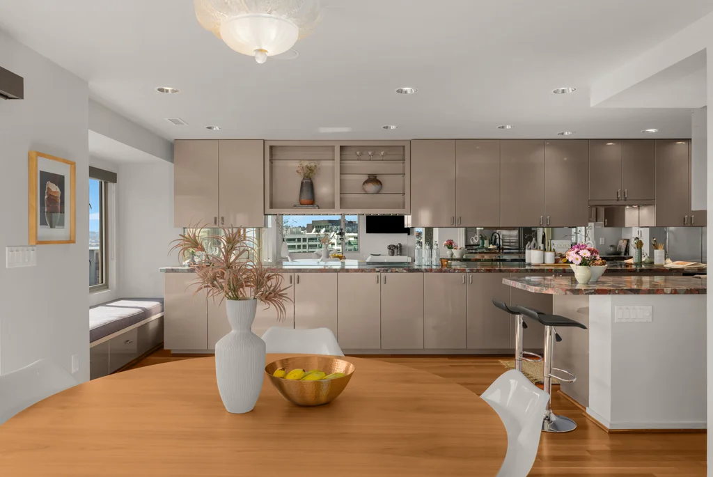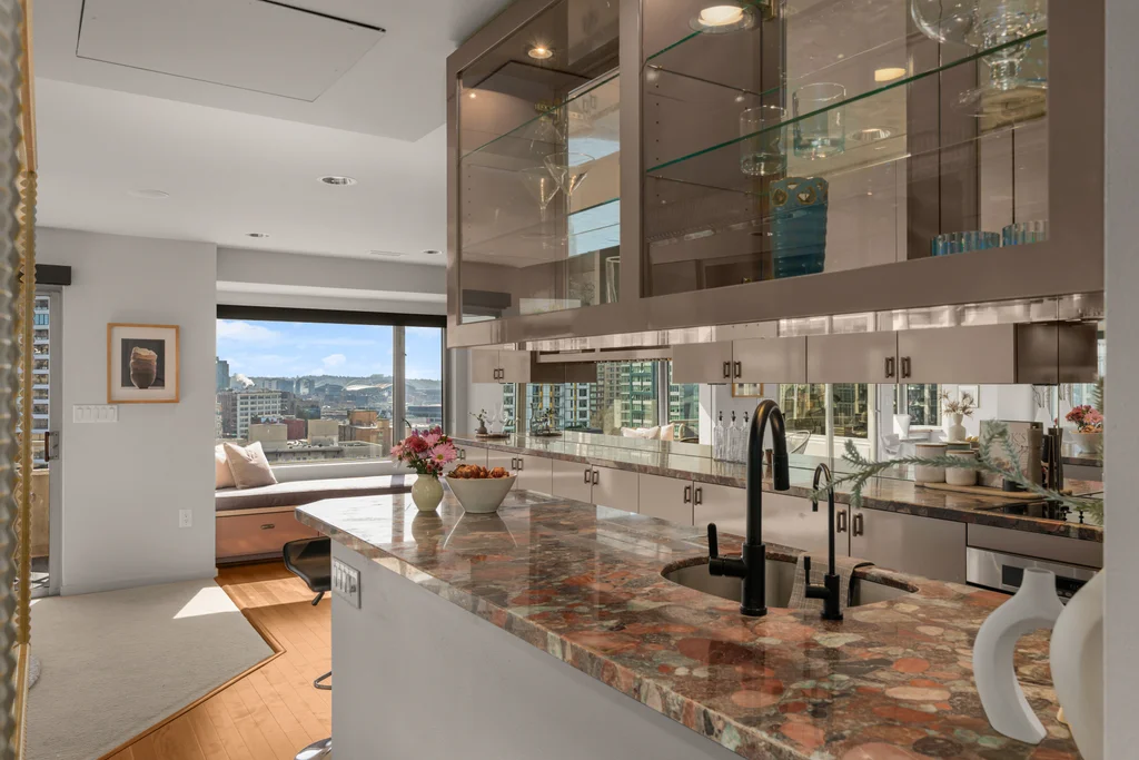 Welcome to Bay Vista and this light filled corner residence showcasing sweeping views from Lake Union and the Space Needle to Mt Rainier and Puget Sound.